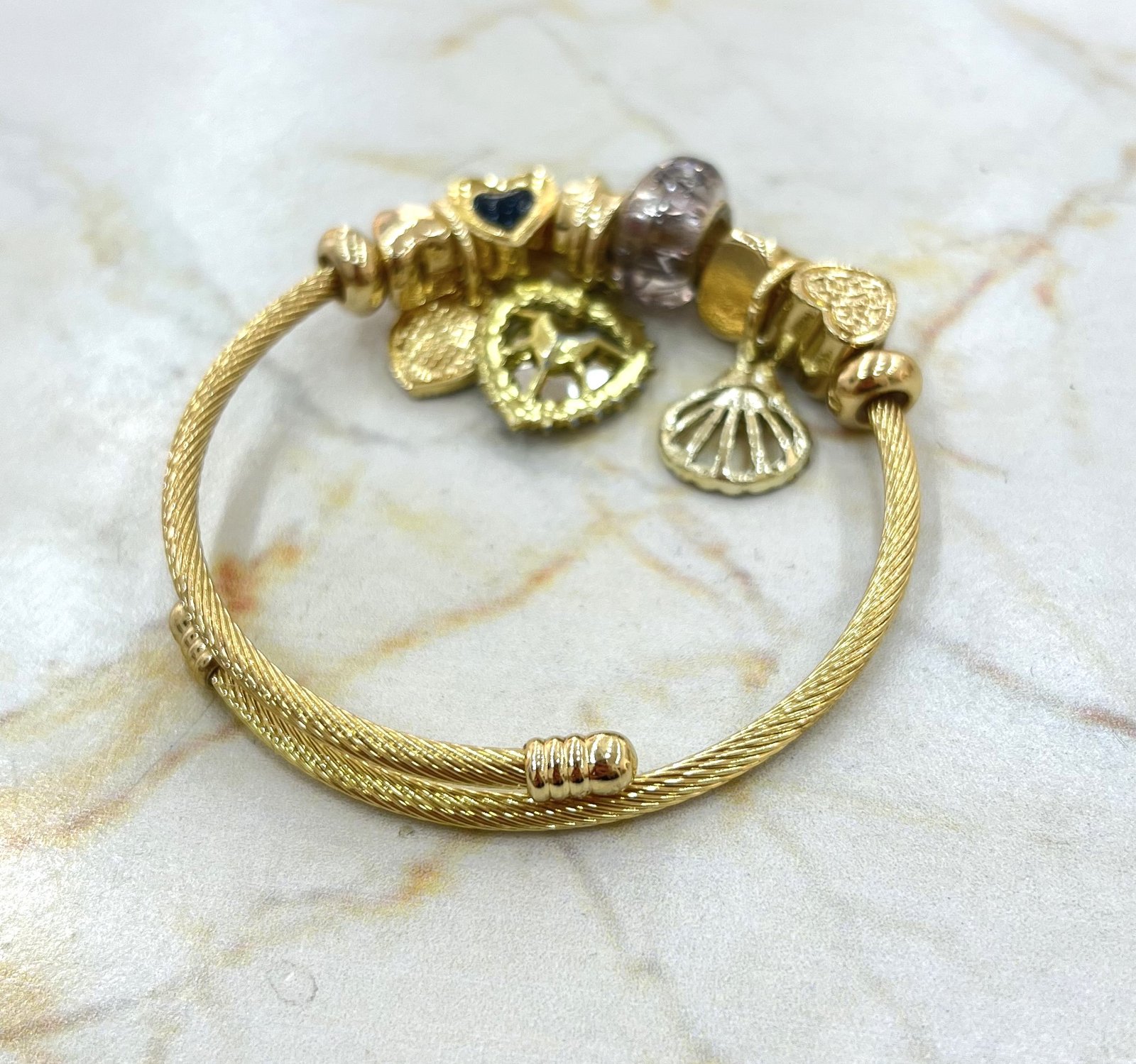 The Golden Heart Pandora bracelet features a beautiful golden heart charm, symbolizing love, warmth, and affection. Its timeless design and elegant finish make it a perfect addition to any jewelry collection, ideal for expressing heartfelt emotions or adding a touch of sophistication to your everyday look.